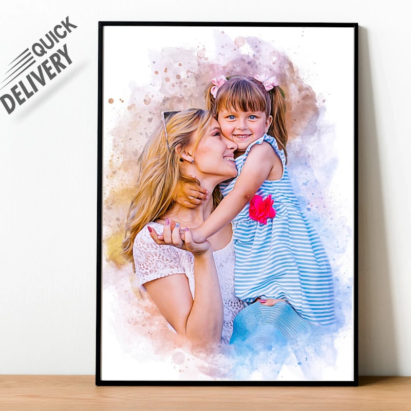 Custom watercolor portrait from photo. Best digital gift for your friend and family.